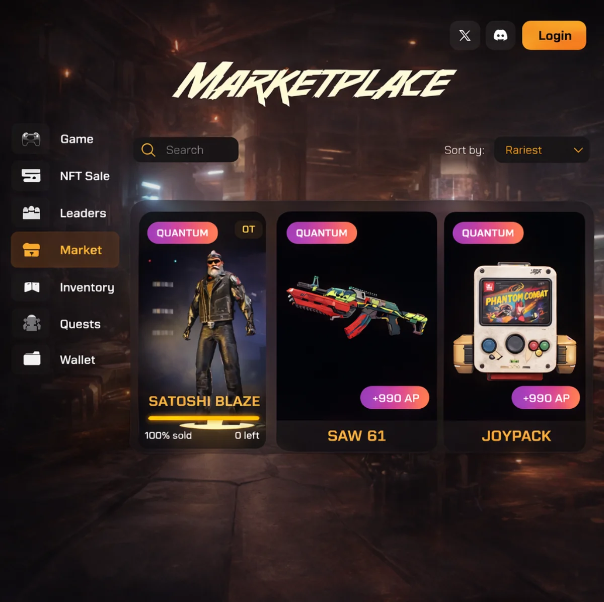 - NFT marketplace for in-game assets