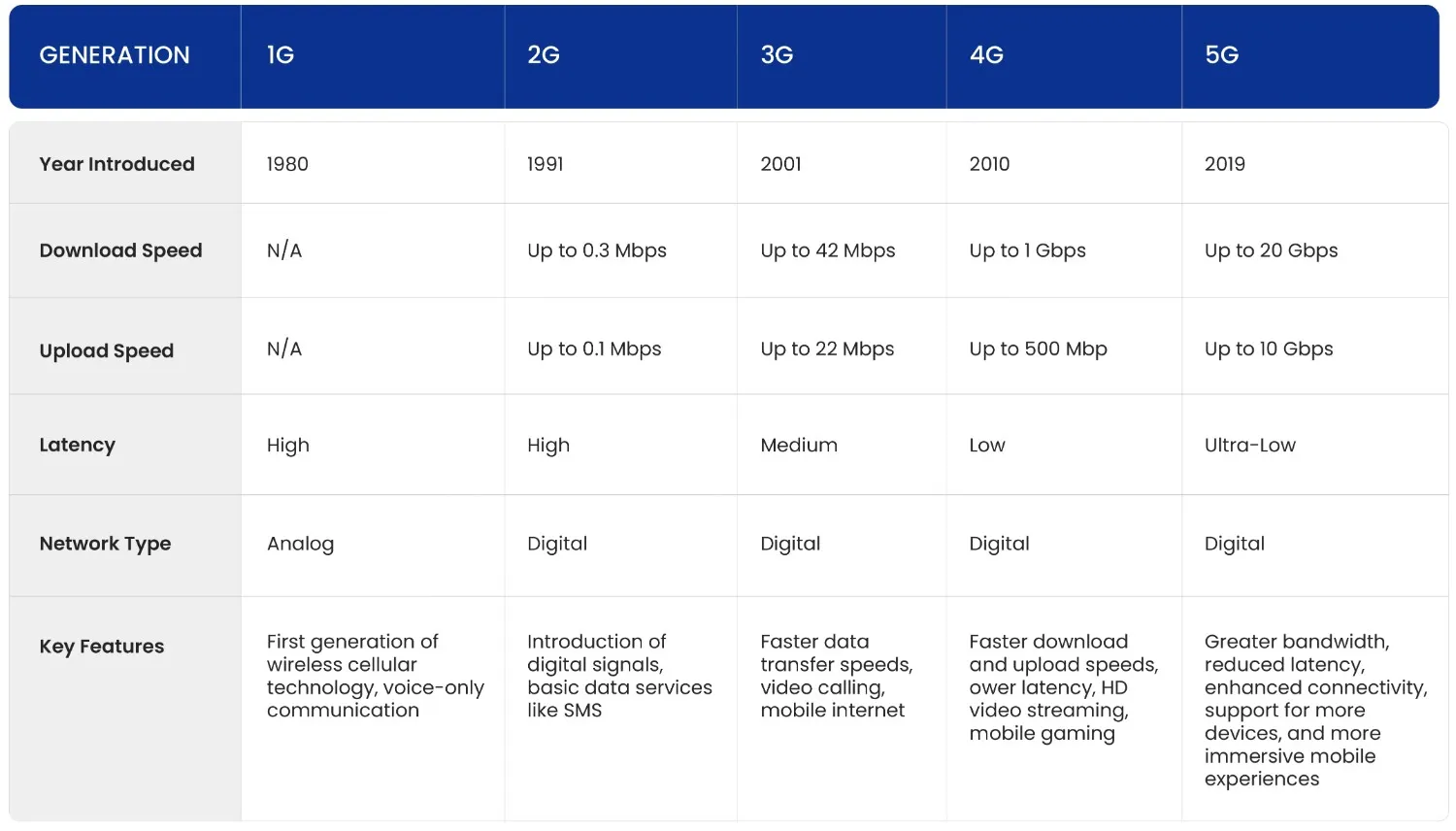 Difference Between 1G, 2G, 3G, 4G, and 5G Internet