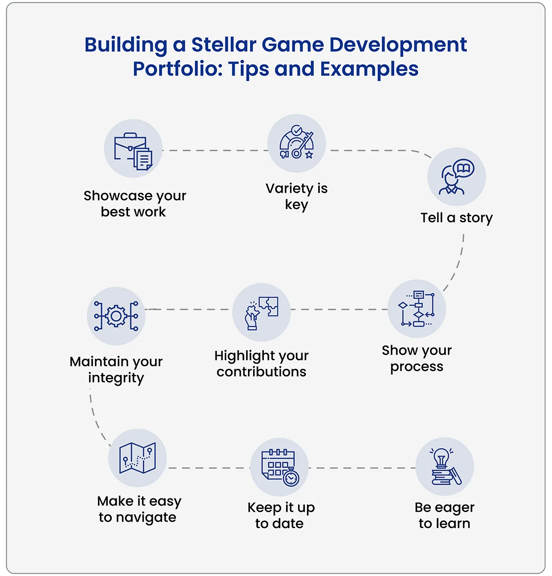 So update your portfolio regularly and showcase your most recent work. This will demonstrate your commitment to game development and your passion for the industry.