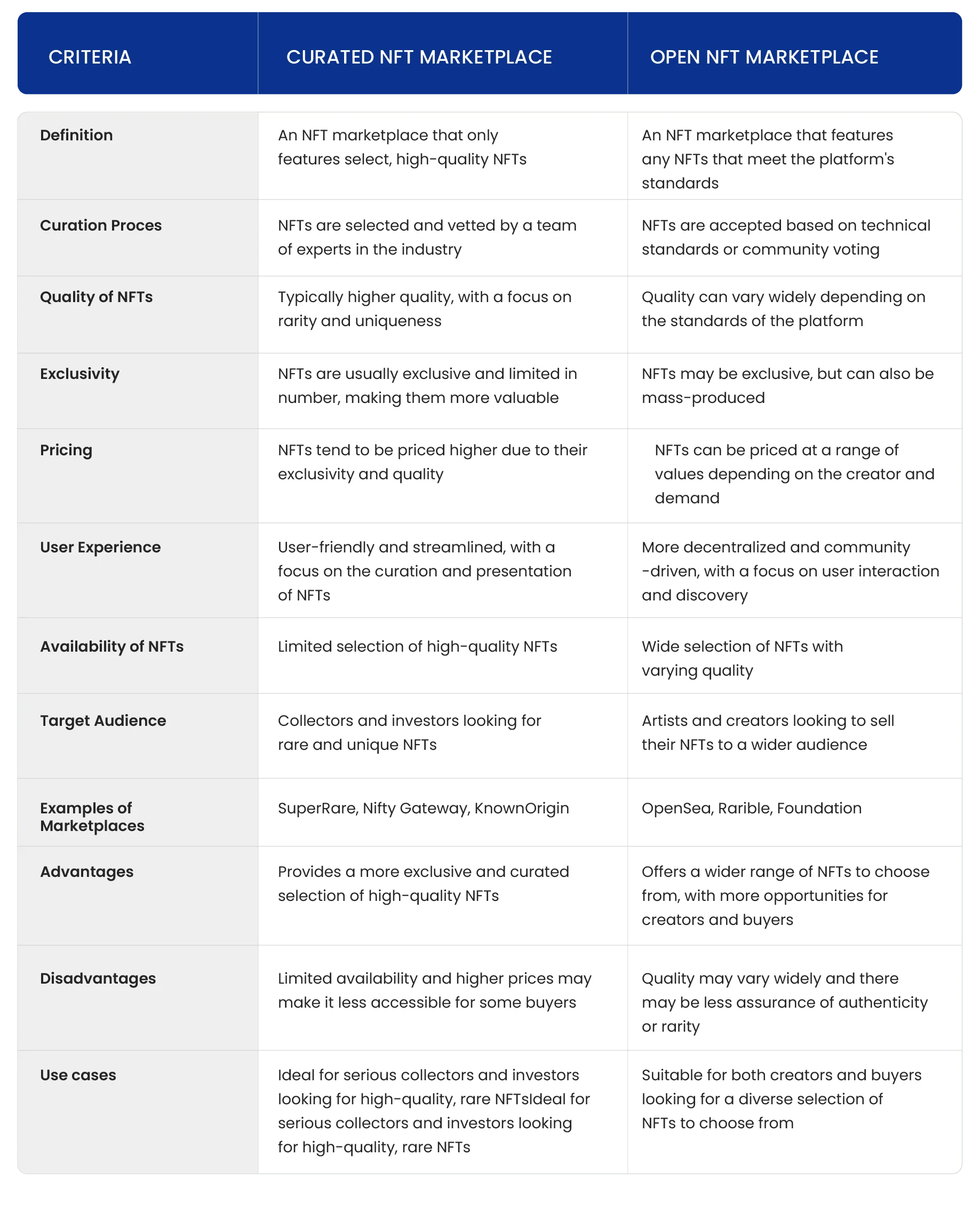 Comparison Between Curated NFT Marketplace & Open Marketplace