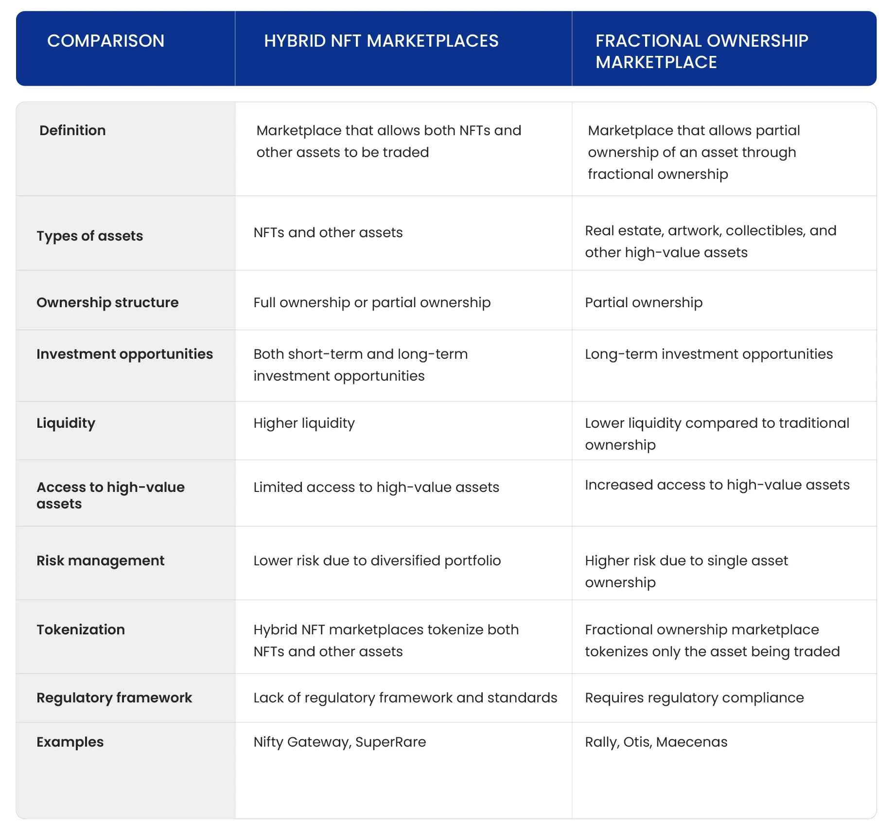 Comparison Between Hybrid & Fractional Ownership Marketplace