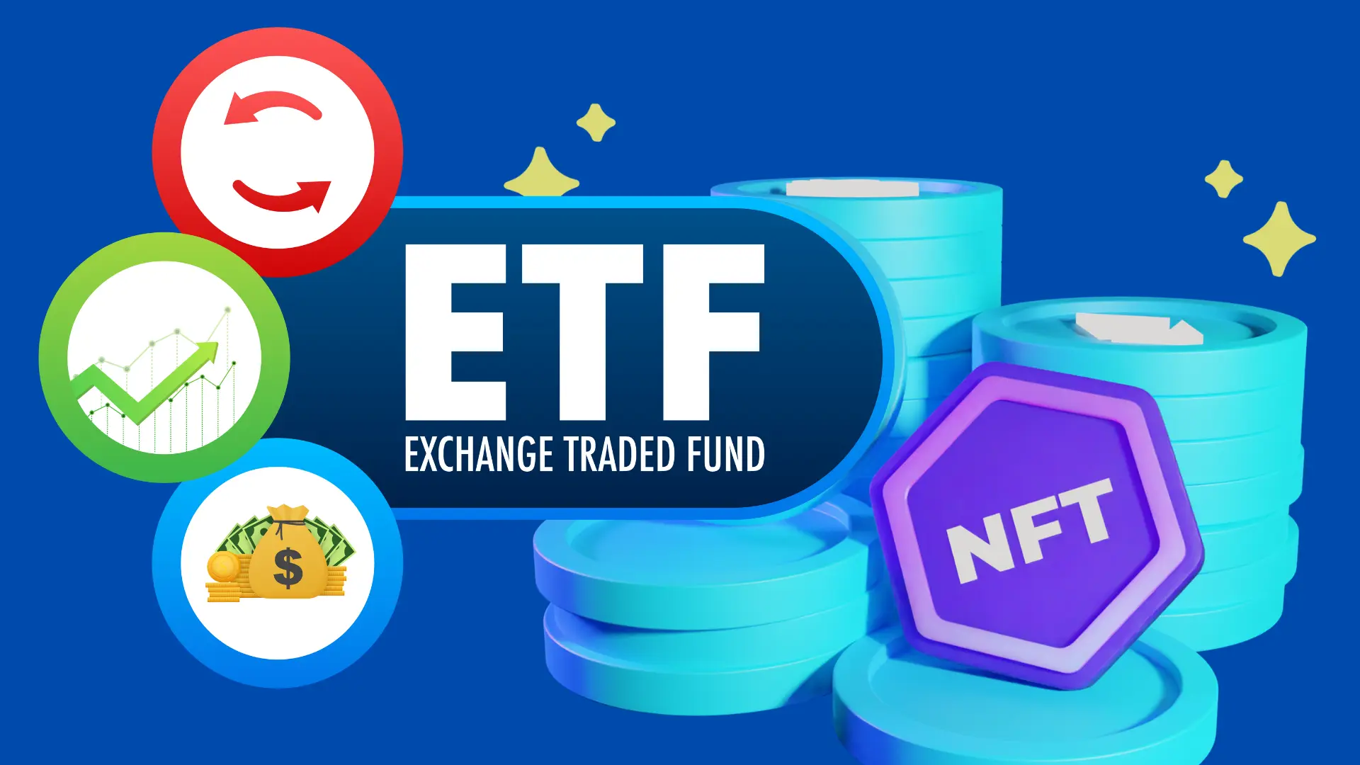 An NFT ETF is essentially a way for investors to get involved in the NFT and blockchain space without having to buy individual non-fungible tokens (NFTs) directly. NFTs are unique digital assets, like digital art or collectibles, that are stored on a blockchain, making them one-of-a-kind and verifiable. They can range from images and videos to tweets and beyond, with no two NFTs being identical. However, buying, selling, and creating NFTs typically requires using cryptocurrency and navigating specialized marketplaces.
