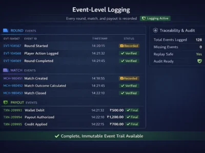 Event-level trails across rounds, matches, and transactions enable fast dispute resolution with dashboards, alerts, and accountability.