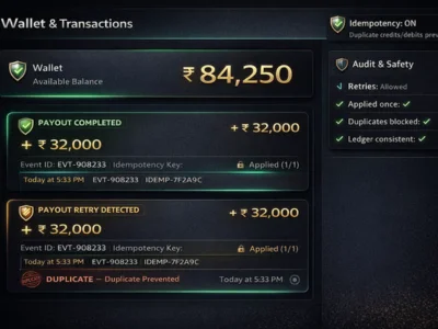 Prevents duplicate credits or debits during retries, failures, or reconnections.