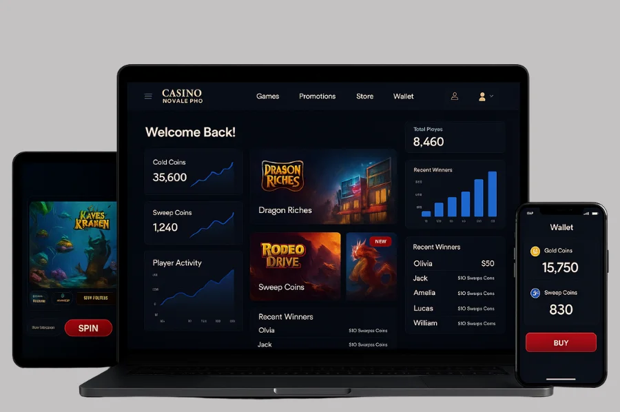 Casino Royale Pro is a fully branded, web-based sweepstakes casino offering immersive gameplay with dual-coin support and real-money integration.